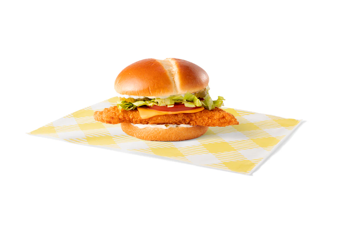 All white meat chicken breast marinated with a bold blend of seasonings, lettuce, tomato and mayo on a lightly toasted bun.